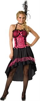 Description: Saloon Gal Adult Costume includes: Dress and corset. Does not include fishnets, choker, headpiece or shoes.